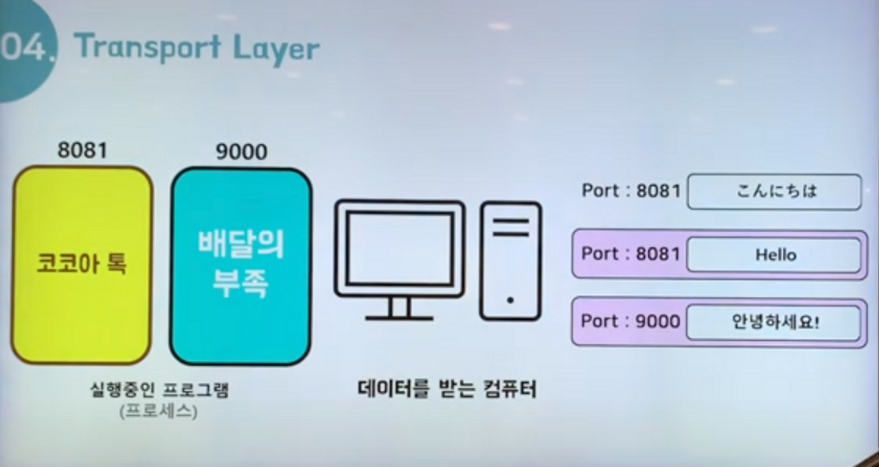 - 송신부 : 세션 계층의 데이터에 포트번호를 달고 프로토콜 설정 후 네트워크 계층으로 보냄