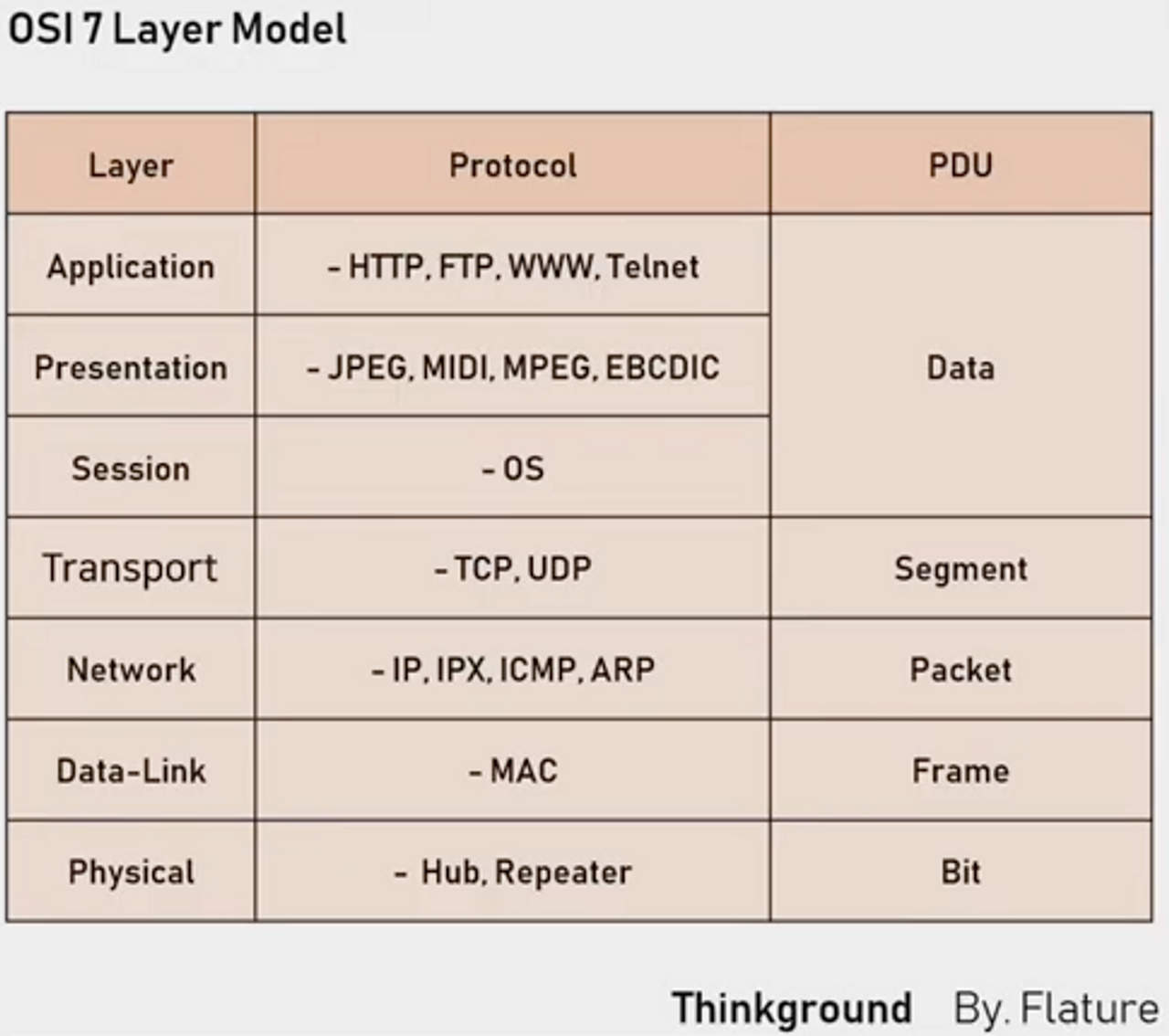 - 따라서, OSI는 7개의 계층을 가지고 있지만 오래된 TCP/IP 프로토콜은 5개의 계층만 가진다.
