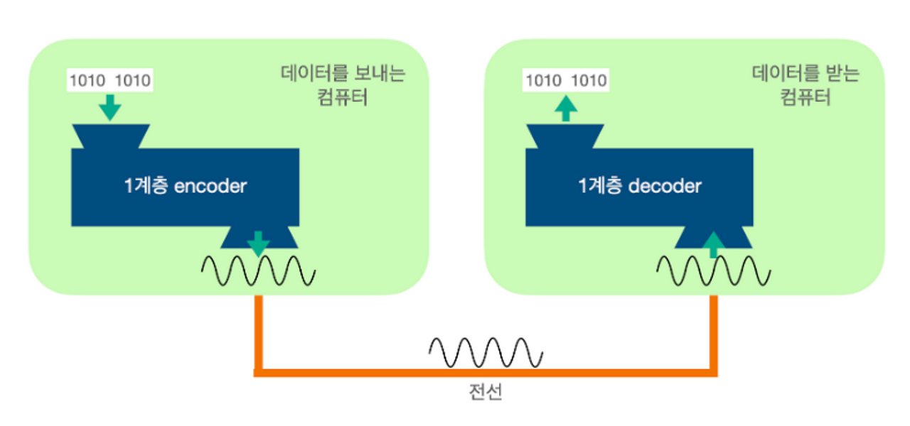 - 물리적인 케이블 계층, 비트단위로 전송되는 전기신호